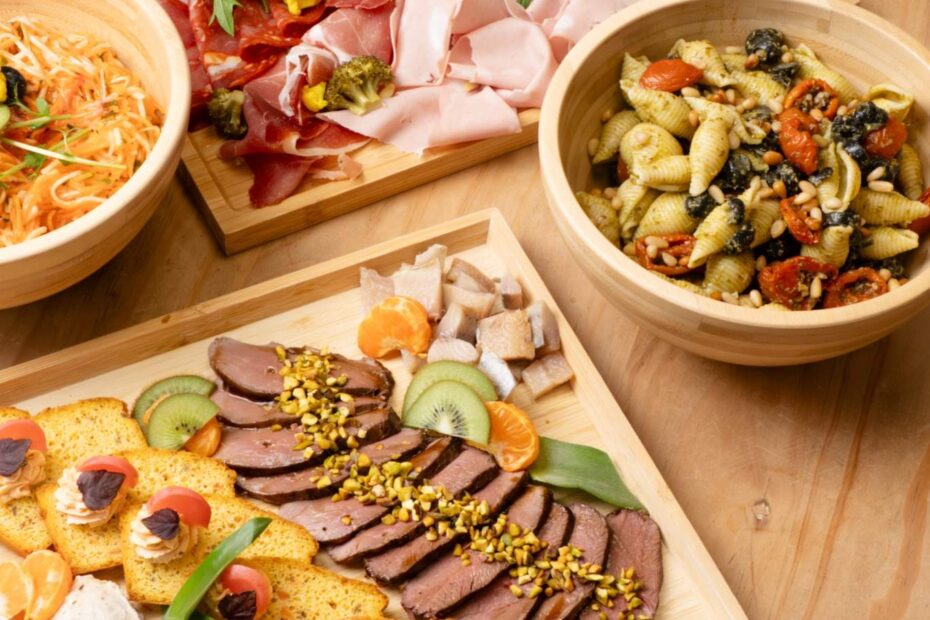 Yanka vous organise votre buffet traiteur personnalisé avec une large variété de viandes, salades fraîches et assaisonnées, et fromages. Présentation distinguée et décoration personnalisée pour une convivialité et un succès garanti. Ajoutez nos boissons sélectionnées pour la formule tout compris !